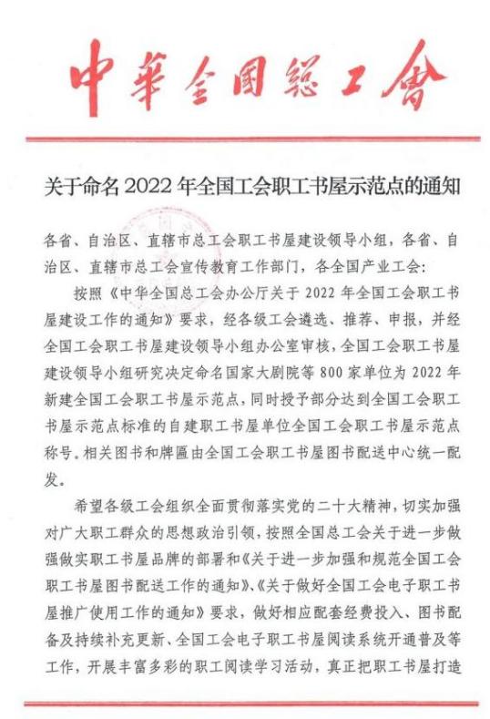 近日,中华全国总工会印发《关于命名2022年全国工会职工书屋示范点的通知》,集团旗下江南新城公司“书香新城”图书室获评“全国工会职工书屋示范点”称号并获赠图书,为全省获评24家单位之一,全省文旅产业唯一。