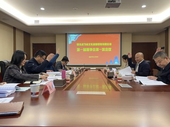 11月9日,湖北武当山文化旅游投资有限公司2023年第一次股东会、第一届董事会第一次会在十堰市武当山堰清苑会议室召开。湖北文旅集团党委委员、副总经理周永彪主持2023年第一次股东会和第一届董事会第一次会议。武当山公司股东代表、董事会成员参加会议,公司监事、经营班子成员等列席会议。
