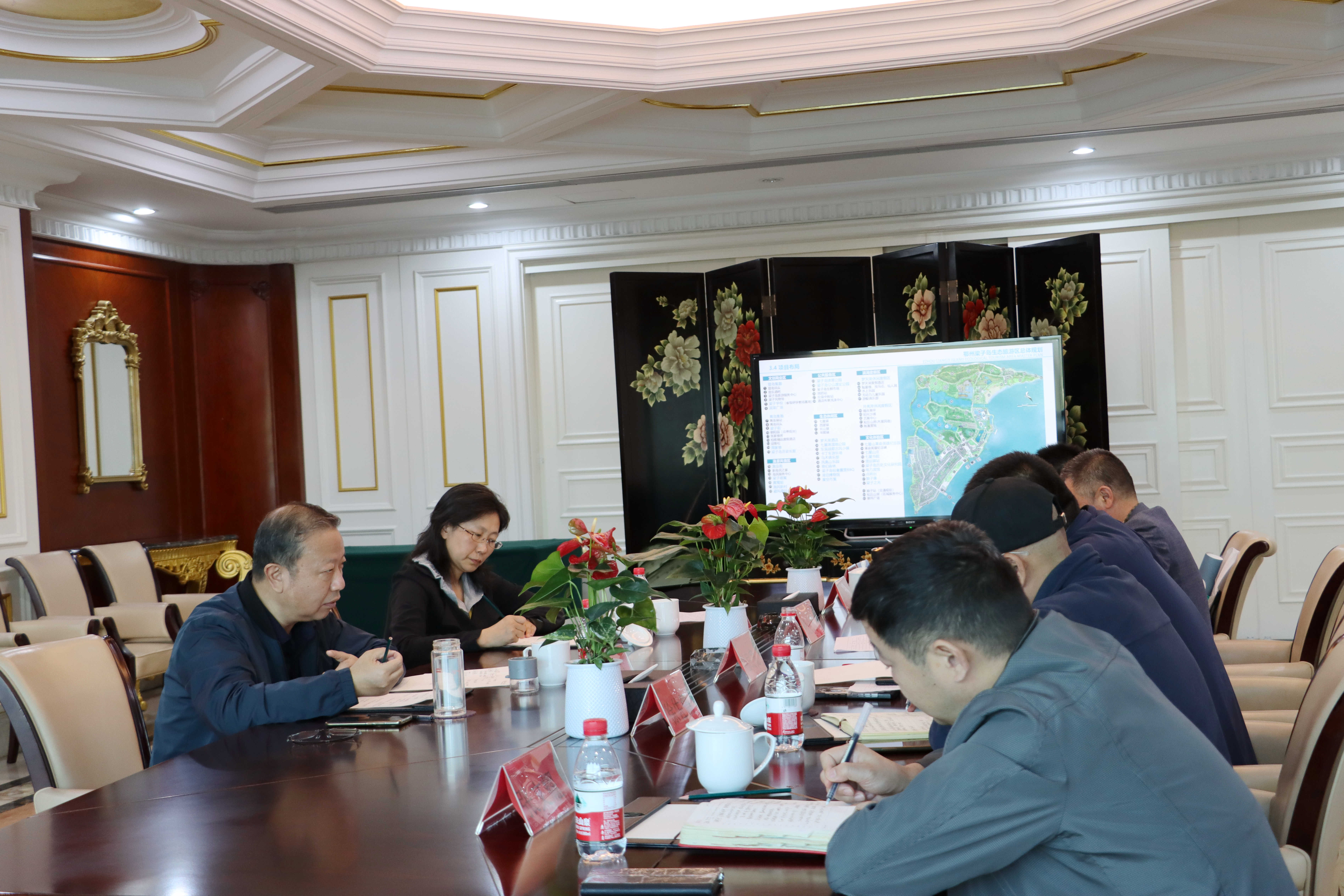 罗钦一行实地调研了梁子岛项目建设及运营管理情况,详细了解岛内租赁及自持物业现状,察看景区二消业态、商街经营情况,听取景区规划及经营专题汇报。