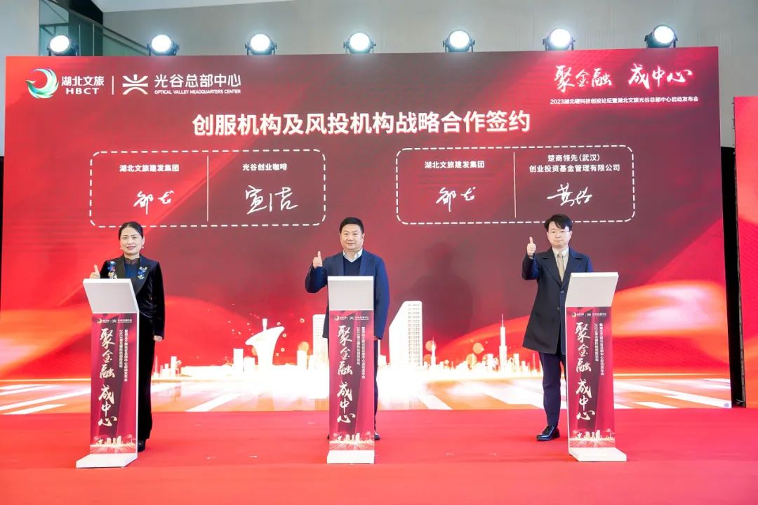湖北文旅·光谷总部中心项目启动仪式圆满举行,标志着这座由湖北文旅建发集团全自持打造的地标性总部经济商务综合体正式亮相。发布会现场,一批金融龙头企业及创服风投机构顺利与湖北文旅·光谷总部中心项目意向签约,共同打造科创金融体系,赋能新兴产业发展,激活光谷腾飞新动能。
