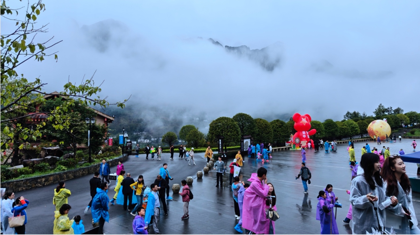 为了积极应对游客高峰,景区每天发布交通、天气和客流实时动态,提前开放全部的停车场,还在游客聚集区域增加了多处志愿服务岗,安排了各种互动体验项目,疏解疲劳,引导游客分流。与此同时,景区也推出了篝火晚会,跳摆手舞等一系列的民族特色的夜游体验活动,让入住景区的游客有了更多的游玩体验项目。