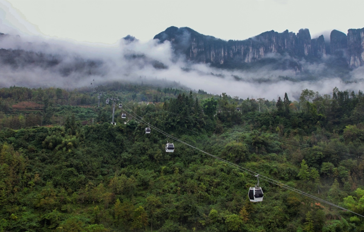 双节期间, 湖北省恩施大峡谷雨后云海绕群山,层林尽染秋意浓。在游客接待中心广场上,每天都能看到热气球将一面硕大的五星红旗升上天空。国旗下面是身着土家族、苗族特色服饰的快闪团队,以及来自全国各地的游客,共同挥舞国旗唱响《我和我的祖国》,将节日的氛围感拉满,表达自己对新中国74岁生日的祝福。