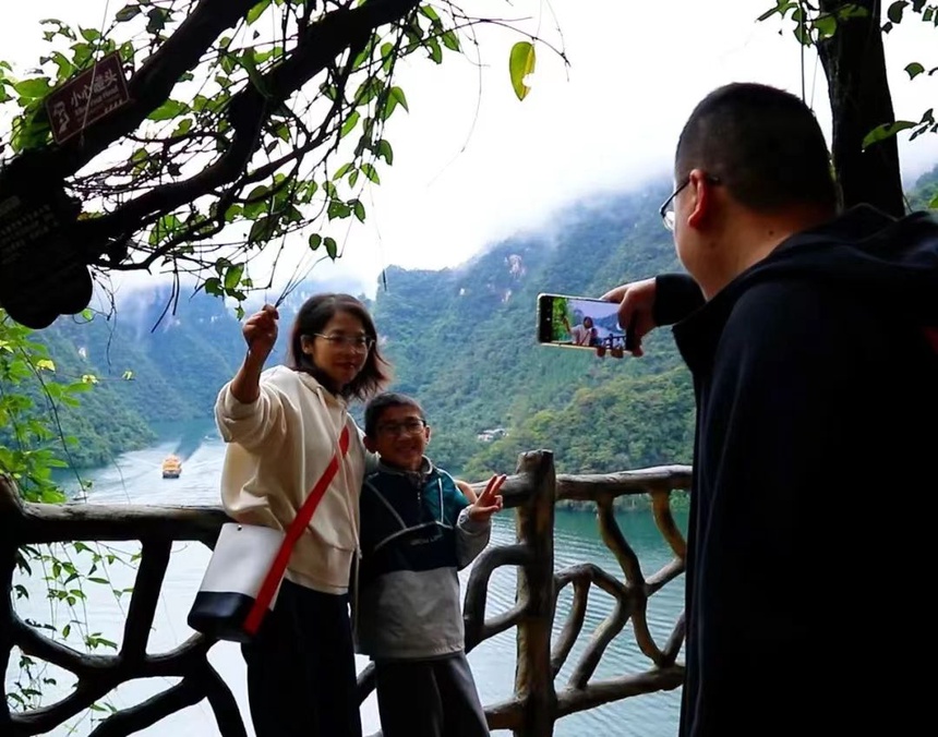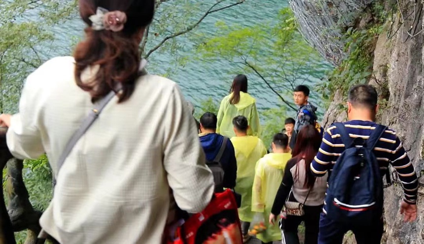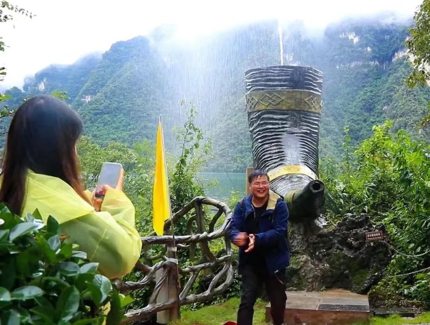清江画廊景区内,洋溢着一片欢声笑语。游客们的心情,丝毫没有受天气的影响,他们在这里尽情赏景,探索着雨中画廊的独特魅力。