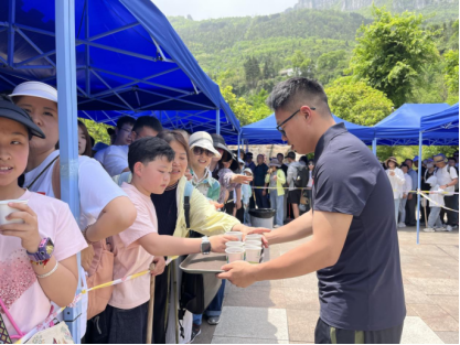 机关党支部“红星服务队”创新服务模式,前移服务阵地至经营核心区,建立多组联动机制,统筹安全保障、景区咨询、财务票务等综合服务。“五一”期间累计服务游客20万人次,开展“一线送清凉”活动,免费提供酸梅汤8000份、矿泉水2400瓶、茶饮4000份。